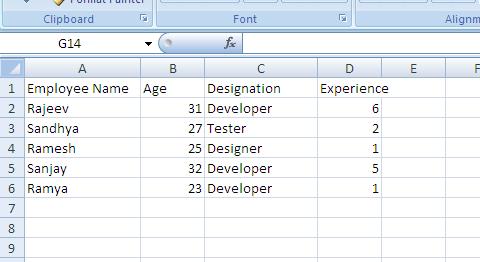 Our CSV file will be downloaded. On opening the file, we can see the data of our table, as shown below.