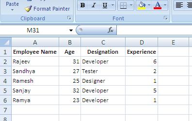 Our Excel file will be downloaded. On opening the file, we can see the data of our table, as shown below.