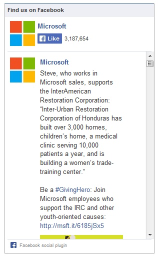 - <div class="fb-like-box" data-href="www.facebook.com/Microsoft" data-width="300" data-height="500" data-show-faces="false" data-stream="true" data-header="true"></div>
