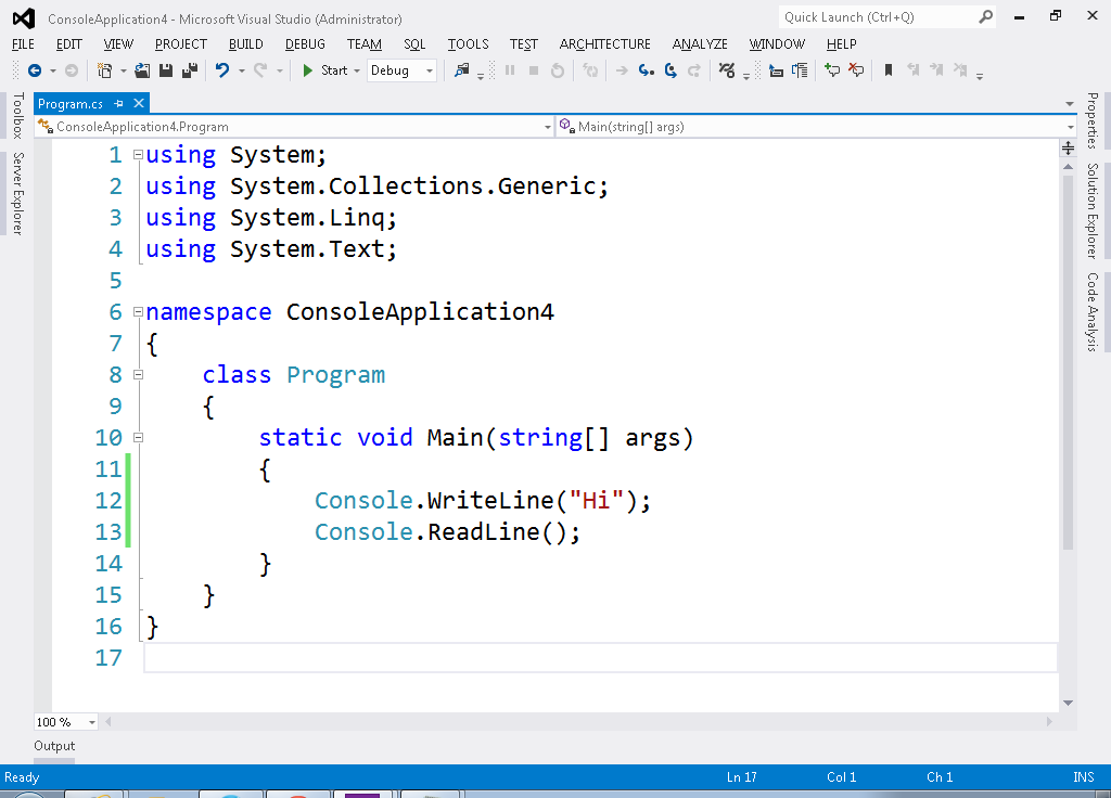 - Open your Visual Studio, it may be any version; this first program will run in all of them.