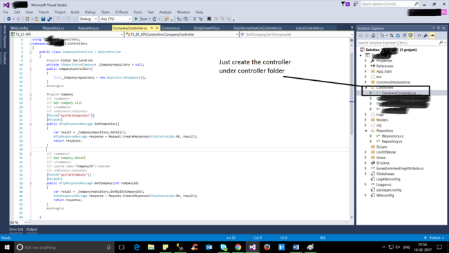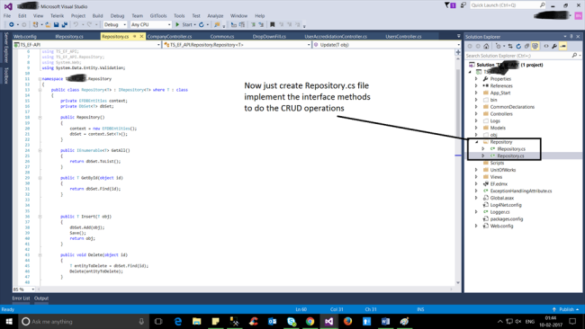 Create Repository.cs file under Repository folder to implement the interface methods to do the CRUD operations