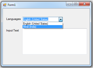 In above code, in form load event we get all installed languages from InputLanguage class and fill it in combobox.