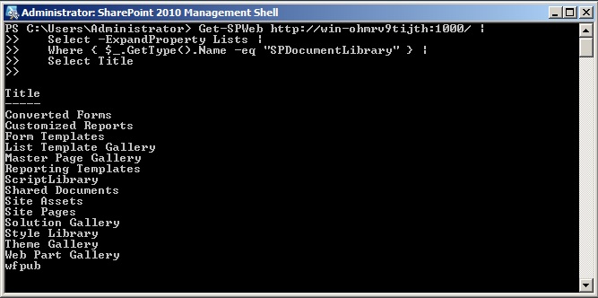 Sometimes we need to get all the document libraries, developed and used in a SharePoint 2010 site. So, we can get all the document libraries used in the SharePoint by using the given below script.