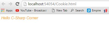 - Cookies.set('Message', 'Hello C-Sharp Corner')//set the cookie value