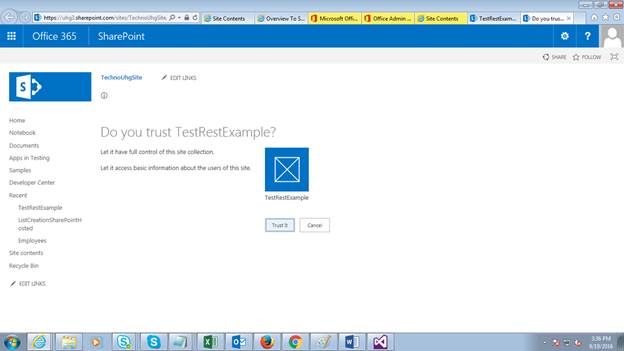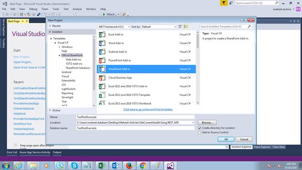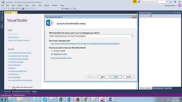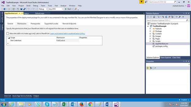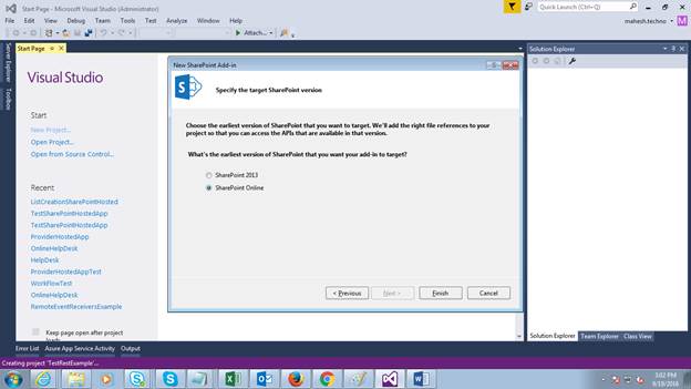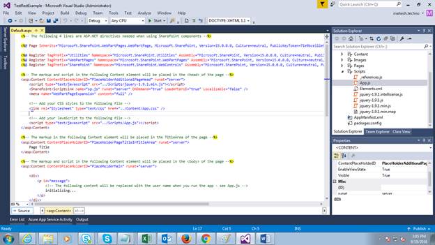 - Create SharePoint Hosted App project.