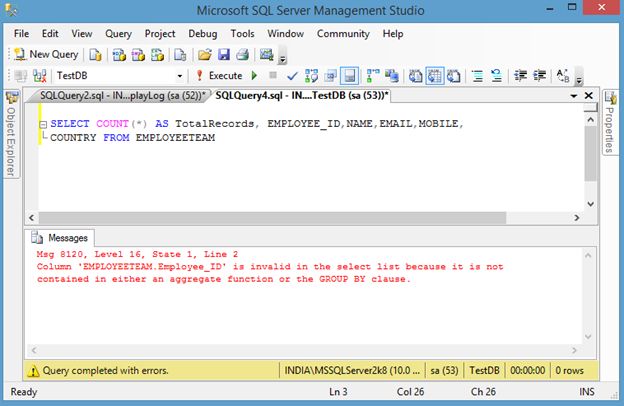 If you use avobe query then you will get below error message: