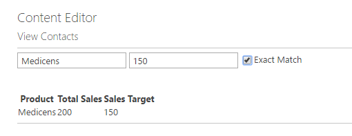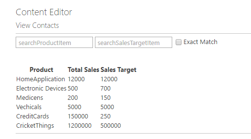 Step 4 - From the above image, we can search two items -- product and sales target items only. If we select check box and enter exact data in both the text boxes, the result will be displayed.