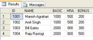 ID,NAME, BASIC,HRA,BONUS,(BASIC+HRA+BONUS)as