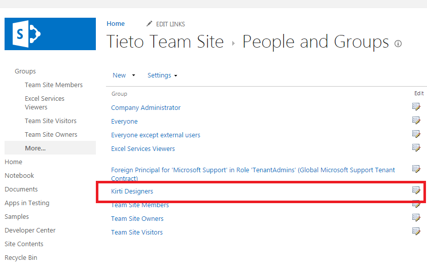 In the following example I’m creating a new group named “Kirti Designers” and giving it the “Design” permission and then add a user to the group. We need site collection administrator rights to perform this task.