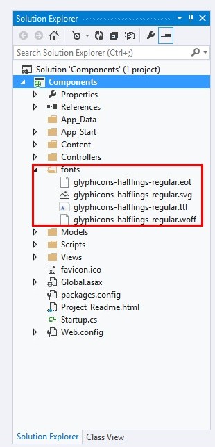 We can see that the Solution Explorer generated all Bootstrap file in Content folder in Visual Studio. And, all Glyphicons are generated in Fonts Folder.