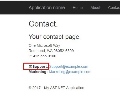 We can add icons like earphone, edit, euro etc. depending on the needs. Here, I am adding glyphicon "glyphicon-envelope" for E-Mail icon.