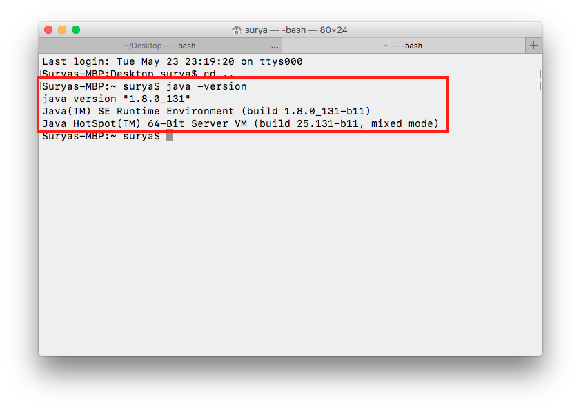 Check if JDK is avaliable or not. Go to Terminal and type $ java -version .