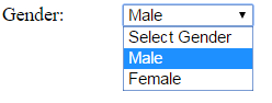- <select class="form-control" id="StudentGender" name="StudentGender"> <option>Select Gender</option> <option>Male</option> <option>Female</optio