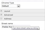 - WebDisplayNameAttribute("Street name"), WebDescription("Can store street value as string"), CategoryAttribute("Address")