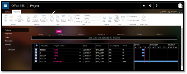 When you click on Project, you can see Project Online landing page which is PWA (Project Web App) site, as shown below.