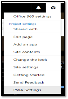 Now, click on gear icon and click on "PWA Settings" as shown below.