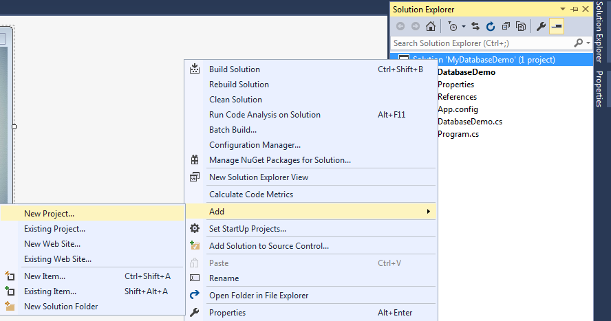 Step 2: In solution explorer create a new project.