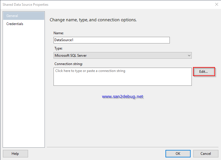 The Shared Data Source window will open. Click the "Edit" button.
