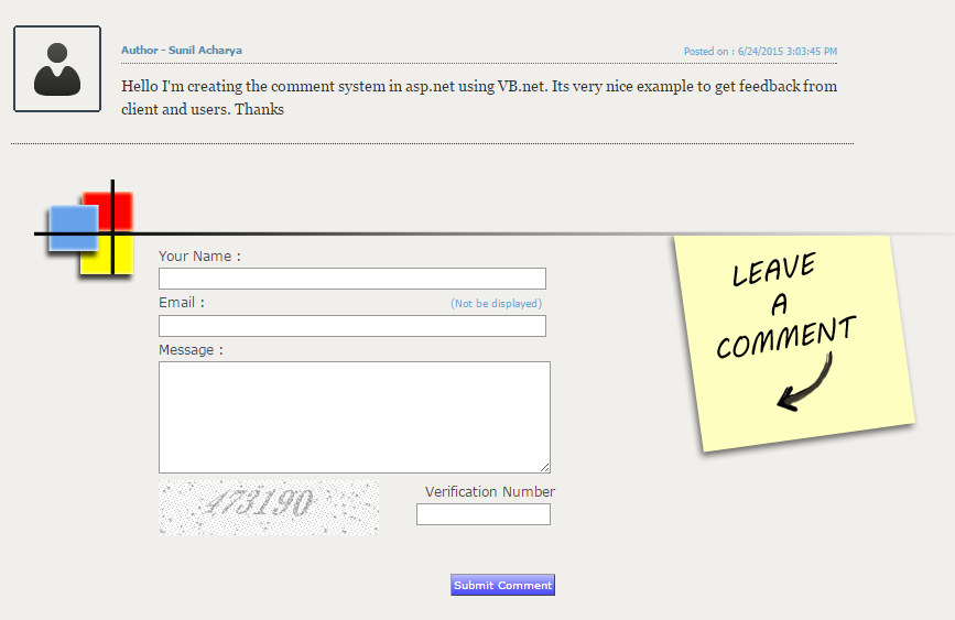 I hope you enjoyed from the comment system development in asp.net using vb.net with XML database.