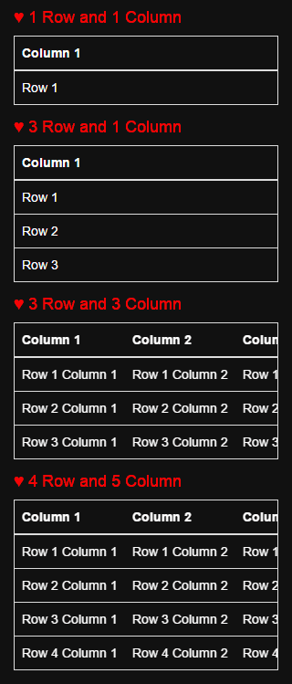 All the tables which I have created will look full size on the big screen of laptops and desktops but on smaller size screens of the tablets and smartphones, the columns will have horizontal scrolling.