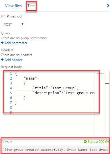 - : req.CreateResponse(HttpStatusCode.OK, "Site group created successfully. Group Name: " + title+" Description: "+description);