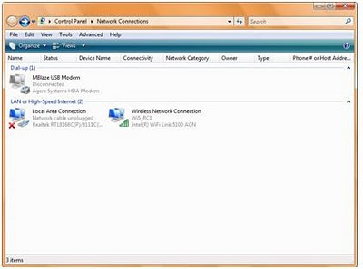 In Control panel, you can see the available network adapters.