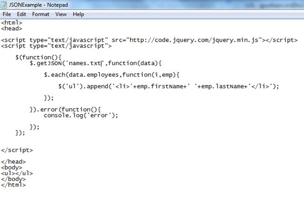 And Save this text file as JSONExample.html.