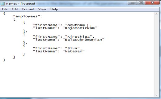 Assuming we have following JSON content in names.txt file with json format content: