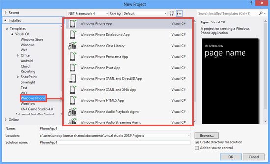 After Successful Installation, Open Visual Studio -> Click on New Project -> Under Windows Phone Template, You will see Windows Phone Application projects.