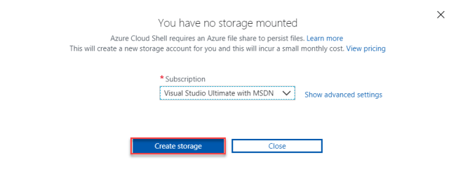 Create Storage and once the storage is created, it will take a few minutes for the Cloud Shell to open the PowerShell session.