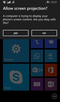 In Windows Phone 8.1, there are two ways to project your screen.