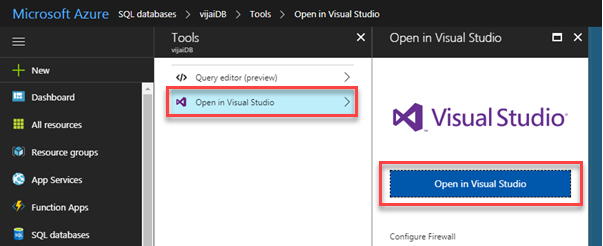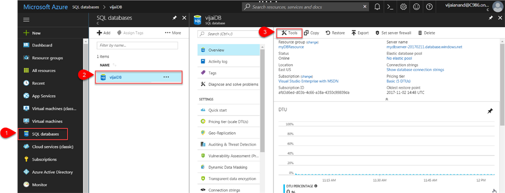 Click SQL Databases -> vijaiDB (which I have created in my previous article). Click Tools.