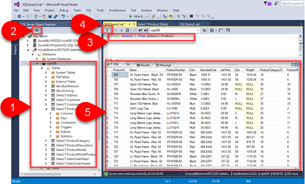 You will be successfully connected to the database from Visual Studio. Click on New Query, enter the query, and click Run. The results will be shown as shown below.