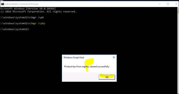 Now, enter slmgr /cpky and hit enter. Now, wait for this to complete. Once this command will execute, this will remove the product key from the registry, if it's still there. The screenshot is given below for the same result which will be on the screen.