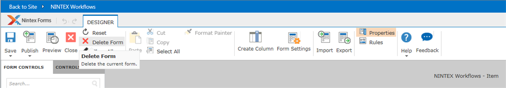 Click on Delete Form in the interface so that the default SharePoint form can be used.