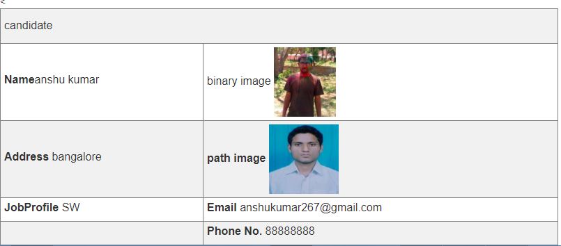 - style = "width:800px;height:50px" > candidate < /td></tr > @foreach(var detail in db.CandidateDetails) { < tr > < td > binary image