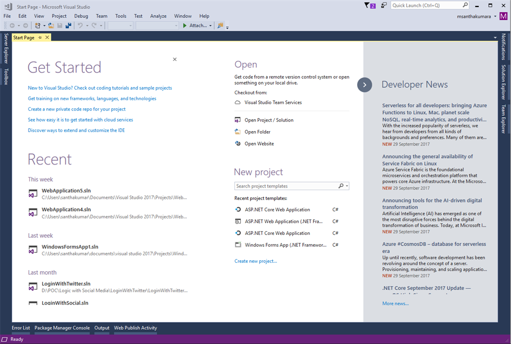 Visual Studio Community 2017 version 15.3.5 was launched as below shown screenshot
