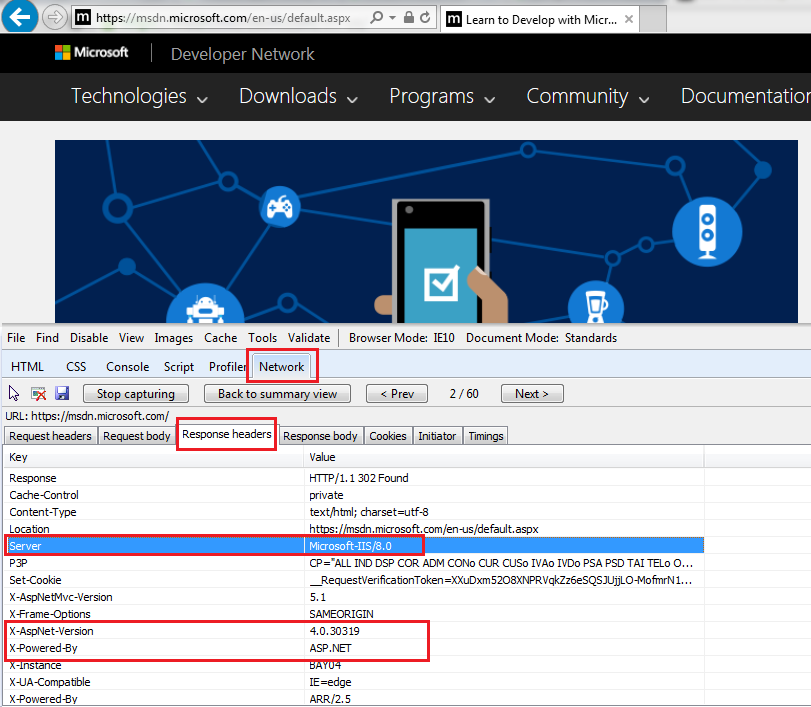 In my previous article, I explained about how to use IE Developer tool bar. As a web developer, whenever I browse a “cool” website, I always want to know about what type of technology is behind this. As an ASP.Net developer, in this post, I’m going to discuss how to identify is a particular website is built with ASP.Net or not from popular browsers like IE, Chrome and Firefox. Also this article explains that if the site is built with ASP.Net then how to identify the ASP.Net version related information from the browser. Various ways exist, I’ve listed few of them here. Also, keep in mind this is only for websites built with ASP.Net. In some cases, if the server administrator restricted/suppresed those version related headers in the response it means some of the tricks here may not provide the necessary information.