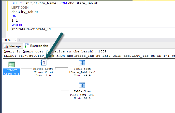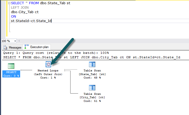 Now, we write two queries, using outer join, and compare the execution plan of both the queries.
