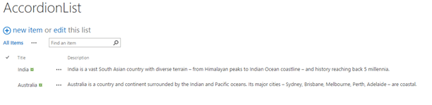 The list given above shows the countries in the title column and the description column will have the content to be displayed.