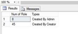 1. select COUNT( * ) as 'Num of Role', Types = (