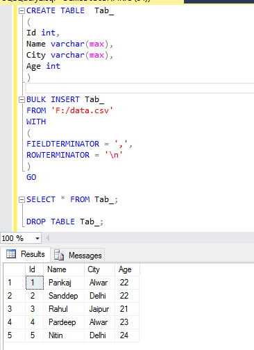 - BULK INSERT Table_Name