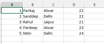 I have a data.csv file, which contains the following data. I will explain, how to insert this data into a data table.