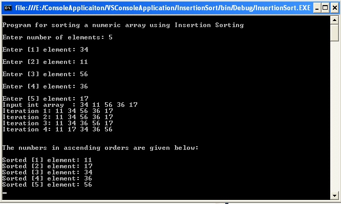 Console.Write("\nProgram for sorting a numeric array using Insertion Sorting");