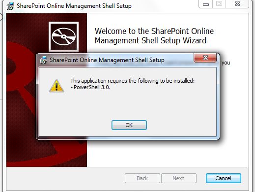 So PowerShell 3.0 is prerequisite for SharePoint Online Management Shell. PowerShell 3.0 is the part of Windows Management Framework 3.0. Windows 7 must have Service Pack 1 for successful installation of PowerShell 3.0.