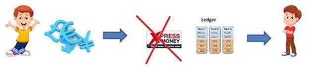 Blockchain will try to transfer the money without any third party trusted entity. Second, it is faster and immediate. Third, it is cheaper.