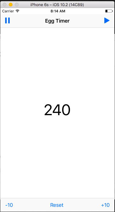 Control + drag each button to the code and name them “play”,”pause”,”minusTen”,”plusTen”,”resetTimer”(Connection type must be Button).