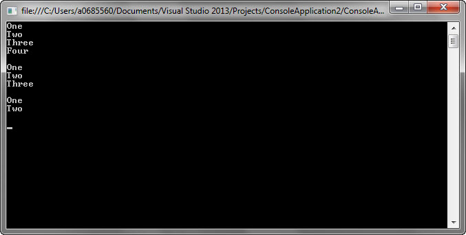 - Console.WriteLine(sJaggedArray[i][n] + "\t");