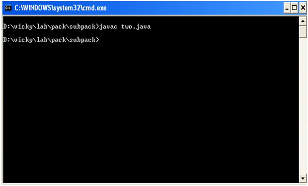 Create a sub directory subpack in the package directory and save the file ‘two.java’.