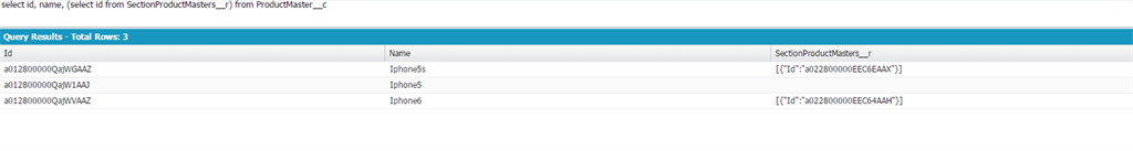 - select id,name,(select id from SectionProductMasters__r) from ProductMaster__c